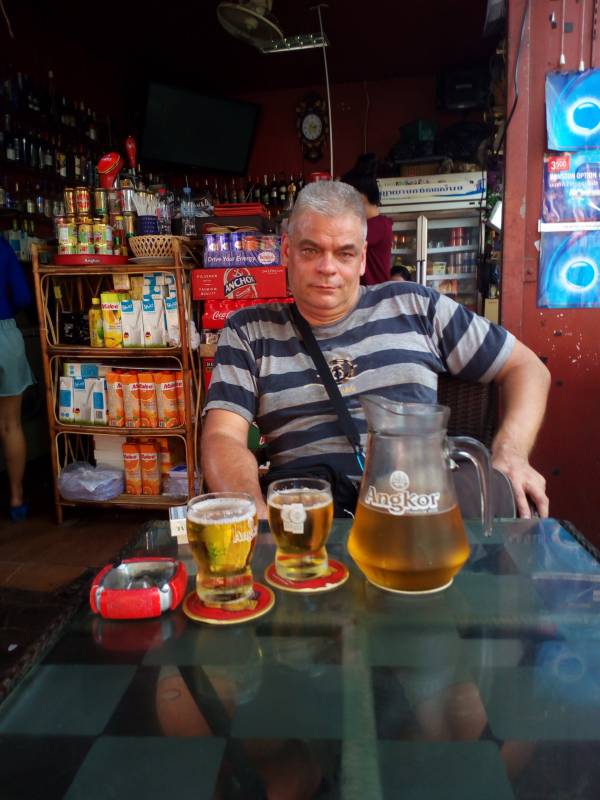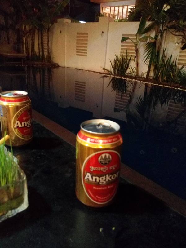 Vēl esam nedaudz par agru, travel kompānijas vēl tikai sāk vērties vaļā. Tāpēc apsēžamies vienā no barčikiem un pasūtām izlejamo alu, kausiņš maksā 0,50$. Vienkārši lieliski. Tā arī lēnām malkojot alu ir iestājusies tumsa un varam sākt meklēt tuk tuk rītdien uz Angkor templi un meklēt variantus, lai nākamajā dienā tiktu uz Kulen kalnu un Bang Malea. Pirmā problēma tiek atrisināta ļoti ātri, tuk tuk drivers atrada mūs pats. Vienojāmies par 15$ un sāksim ar saullēktu. Tas būs jau mans trešais mēģinājums redzēt saullēktu Angkoras templī.