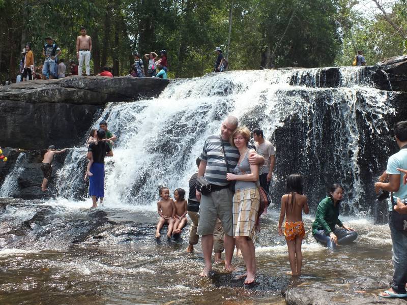 Tālāk jādodas meklēt iespējas tikt uz Kulen kalnu un Bang Malea. Ar tuk tuk tur aizbraukt nevar, tas ir tālu. Par a/m prasa 70$ un vēl + 20$ no cilvēka par ieejas biļetēm. Un tas ir tikai uz Kulen kalnu. Sālīti.. Finālā sameklējam grupas braucienu uz Kulen kalnu, par abiem jāmaksā 70$ un tas ir ieskaitot arī ieejas biļetes. Pie reizes tur pat arī nopērkam autobusa biļetes uz Phnom Phen par 8$ no cilvēka. Tiksim paņemti no mūsu hoteļa, tas labi.