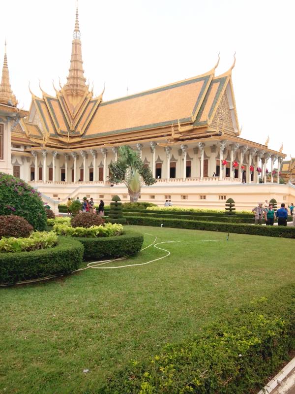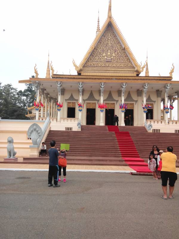 Atšķirībā no Taizemes, šeit karalis uzturas patstāvīgi, pieņem delegācijas, tāpēc Karaļa pils apmeklētājiem tiek atvērta uz 3 stundām no rīta un uz 3 stundām pēcpusdienā. Izstāvot pamatīgu rindu pie kases, kārtīgi apskatīta, tieku ielaista Kambodžas karaļa pilī. Pirmajā momentā jutos nedaudz vīlusies, jo atšķirība ar Taizemē redzēto bija milzīga. Šeit nebija kliedzošās greznības un žilbinošā zelta. Pat lielākā daļa pagodas un stūpas bija izveidotas no pelēka vai brūna akmens – nekādas ārišķības. Jāpiekrīt, ka tieši šāda veida karaļa pils atbilsts Kambodžas tautas būtībai.