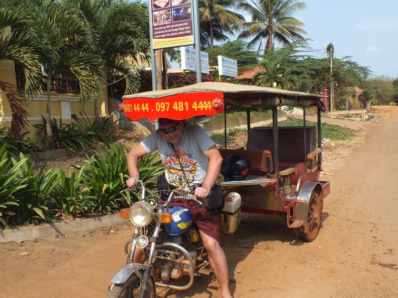 Kā jau pareizi biju paredzējis, šai autobusu kompānijai autoosta ir samērā patālu no mūsu hoteļa, vairāk kā 2 km. Tādu gabalu iet kājām nav nekādas vēlmes, jāņem tuk tuk. Pirmā piedāvājumā par vešanu līdz viesnīcai tiek pieprasīti 4$. Šī nekaunība pat mani nedaudz nokaitināja. Pateicu, ka es nav pirmo reizi un nav pirmo dienu Kambodžā un vairāk par 2$ viņš var necerēt. Saprotams, ka viņš piekrita, jo arī 2$ nav slikta maksa par šo gabalu. Pēc brīža jau esam pie mūsu hoteļa "Longling House I", biju jau dzīvojis šeit iepriekšējā reizē. Patīk man šis hotelis, ir lēts un atrodas ļoti labā ģeogrāfiskā vietā, ir savs ļoti labs barčiks un ŗestorāns. Tagad ir paredzēts šeit uzturēties 3 naktis un tāpēc rezervēju istabu ar airkondišenu. Par nakti nācās atdot 11$. Tiem kuriem interesē šis hotelis vairāk informācijas varat apskatīt pa šo saiti: