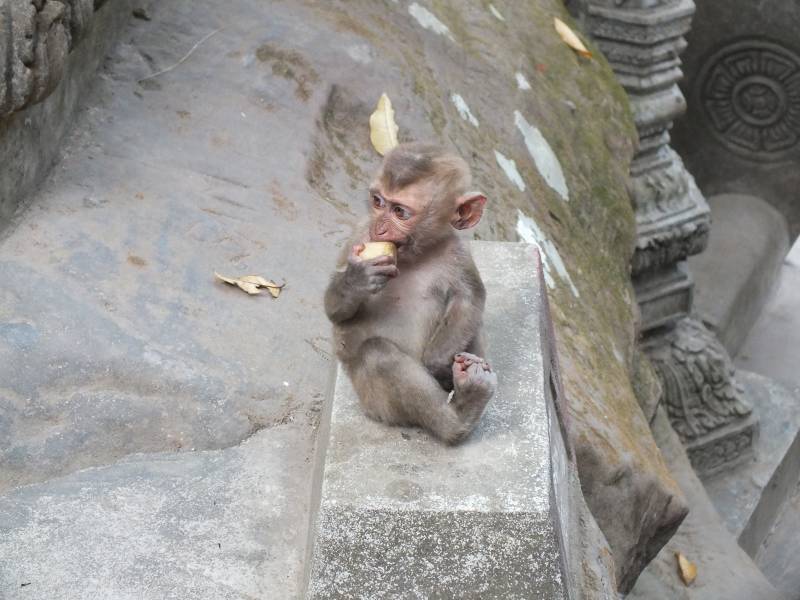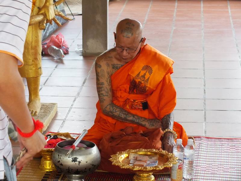 Tempļa iekšpusē rituālus veic ļoti kolorīts budistu mūks. Notetovējies no galvas līdz kājām, kā tāds moto kluba "Vēja brāļu ordeņa" aktīvs loceklis. Simpātisks mūks...