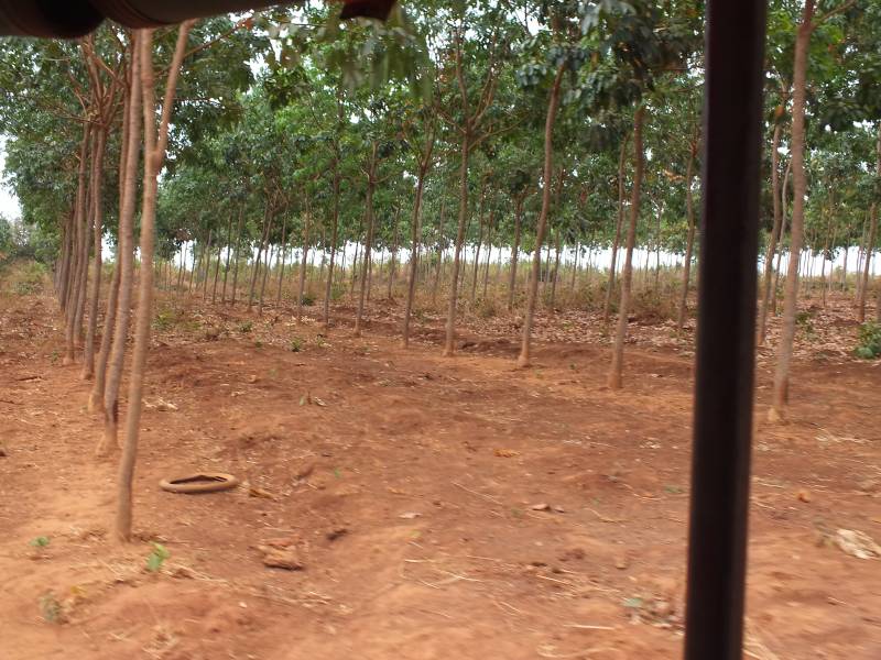 Pirmais brauciens ir uz netālu esošo ciematu. Ceļi vienkārši traģiski, braucot domāju visi zobi izbirs. Bet visā visumā ar tuk tuk draiveru un vienlaicīgi gidu mums ļoti noveicās. Stāstīja interesanti un precīzi, smiltīs zīmēja shēmas, ja kaut ko nesapratām. Šajā apkārtnē galvenais bizness ir dabīgā kaučuku iegūšana, šis bizness ir saglabājies šeit no koloniālajiem laikiem. Visur var redzēt kaučuku koku birzis. Šajā bildē nesen stādītās birzis, kas ražu dos pēc 5 – 6 gadiem.
