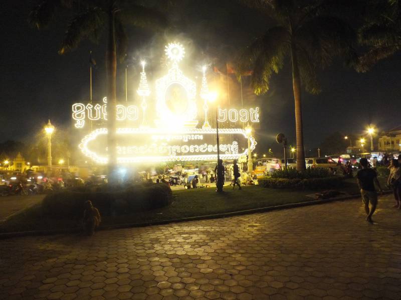 Neliela atpūta un ar tumsas iestāšanos dodamies aplūkot Phnom Penh promenādi un izgaismoto karaļa pili.