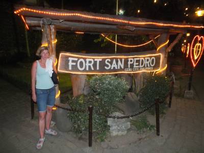 | Ārā jau ir satumsis un mani māc nelāgas aizdomas, ka arī San Pedro fortu šajā reizē draugi neapskatīs. Nedaudz vēlāk manas aizdomas izrādījās pamatotas. Nedaudz nokavējām, un fortā vairs apmeklētājus nelaida. Ieteica nāk rīt... hehehehe.... rīt jau mēs būsim Busuanga. Atlika tikai nobildēties pie forta vārtiem: