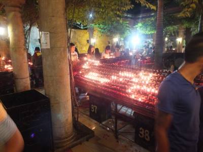 Paviesojāmies arī lūgšanu un piemiņas kurtuvē..... arī mēs katrs uzlikām savas svecītes. Kādu brīdi pakavējāmies un padomājām par tiem cilvēkiem, kuriem mēs likām svecītes. Svēta vieta. Interesanta lieta ir tā, ka pateicoties svecītēm, bazilika ir 2x nodegusi. Tāpēc tagad svecīšu dedzināšana ir iznesta ārā no baznīcas. Tā ir drošāk, grūti tam nepiekrist.
