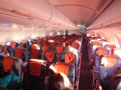 | Tad nu bija pienācis laiks arī doties uz mūsu ļoteni. Dīvaini, ka tikai cilvēku nav. Izrādījās, ka ar šo reisu lido tikai kādi 50 pasažieri. Milzīga ļoteni, bet pasažieru nav. Tik ērti es vēl nekad nebiju lidojis. Praktiski katrs pasažieris varēja visu lidojumu laiku gulēt pa 4 vietām. Bija ļoti ērti.