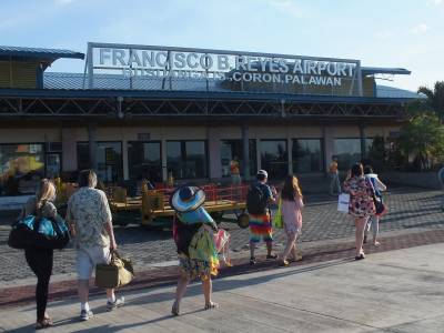 Busuangas lidosta no Coron miesta atrodas samērā tālu... 22 km. Un šajā lidostā darbojas tranzīt mafija. Lidostā pasažierus sagaida vairāki minibusi, bet sēdvietu skaits ir precīzi izrēķināts, lai pietiktu atlidojošiem pasažieriem. Ne vairāk un ne mazāk. Citu transportu šeit nav. Iet ārā no lidostas uz ceļu arī nav nekādas jēgas, nekāda cita transporta tur nav. Brauciens līdz Coron maksā 150 peso, fiksēta maksa. Varat pat nesākt kaulēties, ja vēlaties tad brauciet, ja nē tad palieciet lidostā....