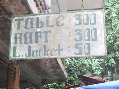 Protams, ka mēs arī paņēmām uz visiem vienu galdu un vēlāk arī izmēģinājām plostu. Turpat ir iespējams arī paēst. Klāt pielieku ēdienkarti ar cenām, lai potenciālie ceļotāji zina, ar ko ir jārēķinās: