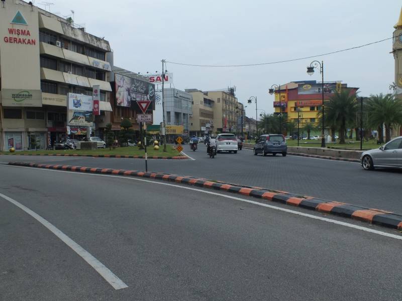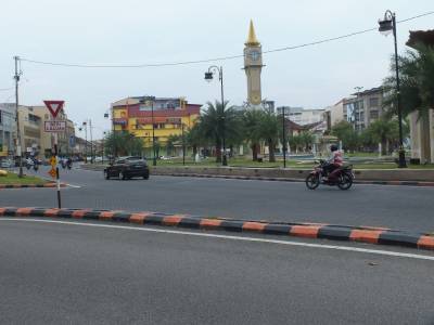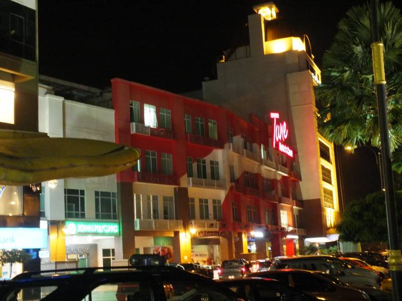 Kad nosēžamies pulkstenis jau ir 19:00 pēc vietējā laika. Kā jau kārtīgs ceļotājs, dodos meklēt sabiedrisko autobusu, kurš mūs nogādās līdz pilsētas centram. Izrādās, ka autobusu satiksme šajā provinciālajā pilsētiņā kursē tikai līdz 18:00. Te nu es saskāros ar Malaizijas takšu mafiju. Visās Malaizijas lidostās darbojas sistēma, ka Tev takša kupons ir jāpērk pie lidostas stenda. Visas cenas ir fiksētas, atkarībā no braukšanas attāluma. Te nedarbojas nekādi skaitītāji vai atlaides. Citi takši, kuri vēlētos braukt pēc skaitītāja vai līguma cenām, lidostā netiek ielaisti. Cenas protams šādā variantā ir uzskrūvētas. Mums par braucienu piedāvāja apstarot ar 29 rentgeniem (29 ringitiem). Variantu jau nav, nācās braukt. Piezīmēšu, ka reālā cena no pilsētas centra līdz lidostai ir 15 RM. Par to mēs pārliecinājāmies, kad pēc divām dienām braucām atpakaļ uz lidostu. Sēžot pilsētas autoostā un gaidot sabiedrisko autobusu uz lidostu, nāca klāt taksisti un piedāvājās aizvest. Cenas parasti sākās no 25RM, tad 20RM un beidzās ar 15RM. Tā arī ir tā reālā cena. Visa ceļojuma laikā, man nācās vēl divas reizes tikties ar takšu mafiju lidostās. Ja ir iespēja, plānojiet savus lidojumus pa dienu, tad ir iespējams izmantot sabiedrisko transportu no lidostām. Sanāks krietni lētāk. Pēc neilga brauciena jau esam pilsētas centrā un tiekam izsēdināti pie sava „Tune Hotels” viesnīcas. Hotelis izskatās jauns un ļoti tīrs. Musulmaņu meičuks lakatiņā laipni sagaida, izsniedz istabas elektronisko atslēgu. Beidzot esam tikuši pie pirmajām naktsmītnēm kopš ceļojuma sākuma. Ir jau vēls un ir iestājies zināms sagurums, bet vēders liek par sevīm manīt un prasa savu daļu. Turpat blakus viesnīcai ir liels supermārkets, kurā ir daudzas ēstuves. Neko šovakar nesarežģījot, dodamies pie bārdainā vistu veča (KFC) un paņemam ātrās vakariņas vistu izskatā. Ātri uzēdam un uz istabiņu prom. Palikusi vēl viena lieta, kura jau kļuvusi par rituālu. Uz Āziju līdzi es ņemu 2 litrus Dūklava kunga brūvēto aliņu. Tā ir neizsakāma bauda dzert latviešu aliņu Āzijā. Alus tiek svinīgi attaisīts un ar lielu baudu izdzerts.