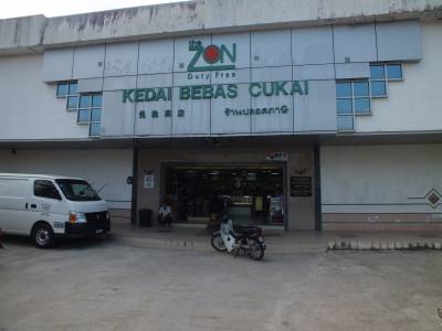 Kad esam nostājušies upes krastā, visu apskatījuši un safotografējuši, kaut kur no krūmiem beidzot parādās divi malaiziešu robežsargi, bruņojušies ar automātiem. Smaidīgi un bezrūpīgi. Saņemam no viņiem sveicienus „Hello!” un dodamies katrs tālāk savās gaitās. Tā bija visa viņu interese, ko divi baltie dara uz pašas robežas. Kad esam visu izstaigājuši, izpētījuši un apskatījuši dodamies uz mums zināmo „Duty Free” veikalu iepirkt cigaretes un alkoholu Indonēzijai. Veikaliņš maziņš, cenas tādas pašas kā Kuala Lumpuras lidostas „Duty Free”. Domāju paņemsim pāris aliņus ko vakarā viesnīcā izdzert. Opā, minimālais daudzums ko var nopirkt ir viens iepakojums, kurā ir 24 skārdenes. Ar to vilšanās nebija galā. Kad esam izvēlējušies cigaretes un 1 litru džina pudeli, dodamies pie kases maksāt. Pārdevējs jau sāk formēt kaut kādus papīrus, kad no viņa mutes atskan nevainīgs jautājums: „Jūs dodaties uz Taizemi?”. Mūsu atbilde, nē dodamies uz Kota Bharu. Ops... nedrīkstam Jums pārdot akcīzes preces, tikai tiem, kas šķērso robežu. Tiek mums atņemtas cigaretes un pudele džina un tiekam ar „negodu” izvadīti no veikala. Nē, viss jau bija laipni ar atvainošanos..... Kā izrādās, ja kāds pērk akcīzes preces šajā veikalā, tiek noformēti pavaddokumenti par preču daudzumu un pircējs ar visu preci veikala darbinieku pavadībā tiek pavadīts līdz pašai robežai un nodots pa taisno muitnieku rokās. Tā kā nekādu cerību....