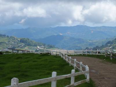 Nu jau kļuvis par vienu no tūristu iecienītiem apskates objektiem. Tālāk jau dodamies augšup kalnos. Apkārt nu ļoti glīti skati. Kalnu virsotnes miglā. Arī mēs sasniedzam tādu augstumu, kad nākas braukt pa miglu. Otrā pietura kalnu fermeru ciematā. Ciematiņš saucas Kundasang. Ciemats izvietots nelielā ieplakā, apkārt kalnu virsotnes.