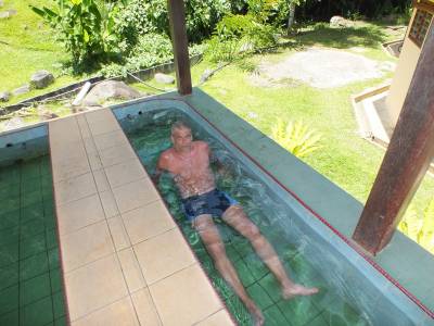Ja ir vēlme, par atsevišķu samaksu var plunčāties privātajā vannā. Ir baseiniņš, kur var mierīgi olas vārīt. Kādu stundu nomērcējos tajos karstajos ūdeņos, tad metos uz klasisko peldbaseinu ar vēsu ūdeni. Šinī karstumā bija ļoti atspirdzinoši un svētīgi. Arī kādu stundu tur mērcējos.
