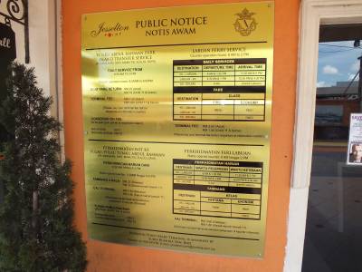 Principā lielas jēgas braukt ar autobusu nav. Vienkārši bija vēlme apgūt un palietot sabiedrisko transportu. Kota Kinabalu centra teritorija nav tik liela, visu ir iespējams mierīgi apstaigāt kājām. Terminālī izpētām laivu cenas un kustību intervālus uz „Tunku Abdul Rahman National Park”. Izvēle no 4 salām. Laivas kursē katras 20 minūtes, cena par braucienu uz vienu salu turp/atpakaļ ir 23Rm. Ja ir vēlme apskatīt vēl kādu salu jāpiemaksā 10Rm par katru salu. Turpat ir arī cenas laivai uz Labuan salu un Bruneju.