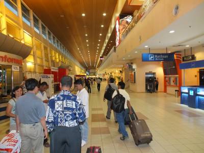 | Ielidojām no Clark Kota Kinabalu lidostā pēc 18:00. Man neizprotamā kārtā, te bija jāaizpilda un jānodod imigrācijas kartiņa. Ielidojot Kuala Lumpurā, nekādu kartiņu aizpildīt neprasīja. Jaunievedums ir arī pirkstu nospiedumu noņemšana šķērsojot robežu. Pirkstu nospiedumus noņem izlases kārtībā, kādi ir tie kritēriji man nav skaidrs. Mums neprasīja. Pats process notiek ļoti ātri. Bez problēmām šķērsojam robežu un nonākam Kota Kinabalu 2 lidostas terminālī.