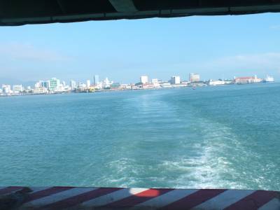 Lai tiktu uz prāmja jāmaksā 1,20 Rm. Uz prāmja cilvēku tik daudz, ka liekas, ka ābolam vairs nav kur nokrist. Nu labi, tas tāds pārspīlējums. Bet tiešām cilvēku milzum daudz. Džordžtaunā jau kā ierasts bezmaksas tūristu buss un tieku izlaists gandrīz pie pašas viesnīcas. Šoreiz ceļa izdevumi bija 9,50 Rm. Uz Kulimu tiku pa 3,30Rm. Bet tas arī nav slikti.