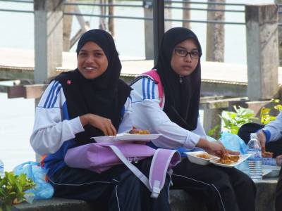Pie Penangas nacionālā parka ieejas bija vesela klase ar musulmaņu meičukiem. Visas vienādā skolas formā. Visiem bija izdalītas vienādas brokastis kastītēs. Tā nu viņas tur kolektīvi stiprināja miesu pirms grūtās pastaigas pa parka takām. Visas ēda ar rokām, nekādu problēmu.